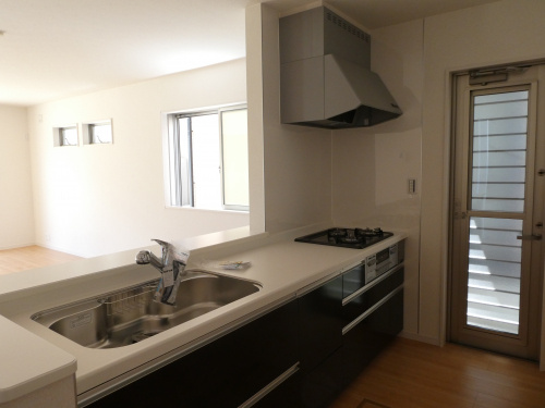 キッチンはリビングの見えるカウンターキッチンで勝手口もあります。