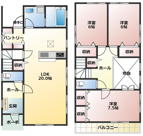 3号棟はLDKが20帖でパントリーもあります。食材もスッキリ!!全室6帖以上の3LDKです。