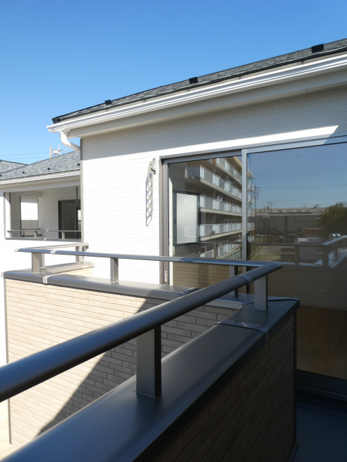バルコニーはL字型バルコニーです。二部屋から行き来できて、洗濯物だけでなく、お布団干しにも最適ですね。