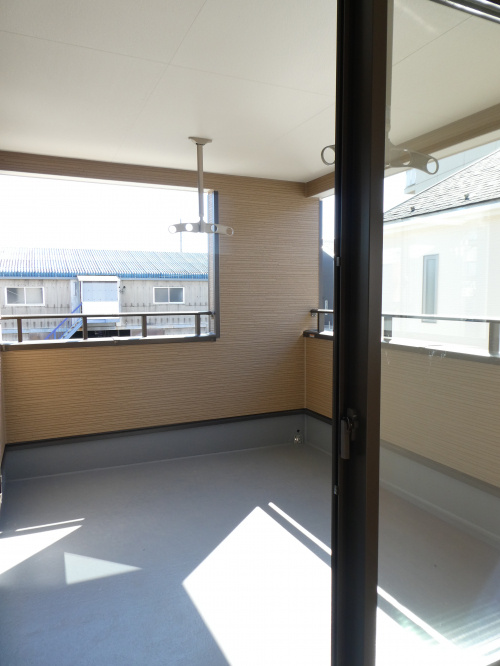 バルコニーはルーフバルコニーです。二部屋から行き来できて、洗濯物だけでなく、お布団干しにも最適ですね。