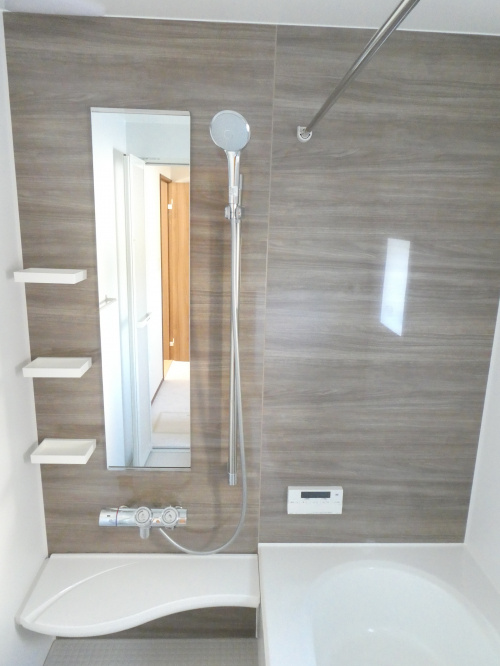 浴室は冷めた湯を再び沸かせる追焚機能が付いています。シャワー付き洗面台の多くは鏡は3面鏡で収納付きになっています。