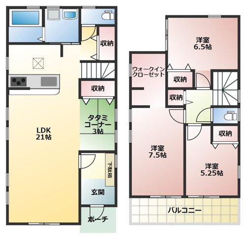 駐車2台可能なので、友達や親戚の方が急に来ても置けます。2ヶ所にトイレがあるので、何不自由の無い生活が送れます。家族におすすめな3LDK。設備も充実しています。梅雨の時期のカビの防止にもつながる浴室乾燥機を標準装備。