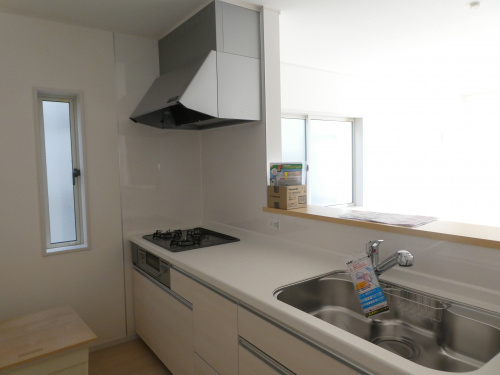 キッチンはシステムキッチンで収納豊富です。三口コンロなので。お料理作りの時短も可能にしてくれます。