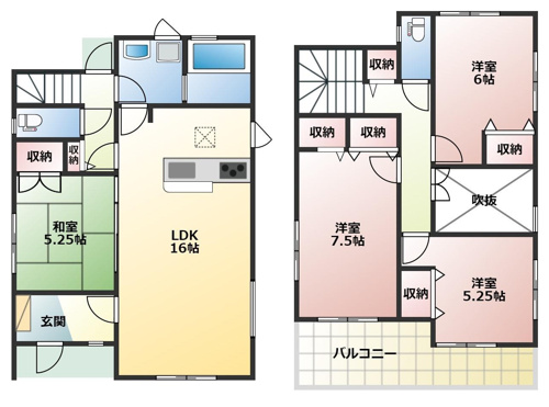 来客が沢山来られた場合にもトイレが二カ所あるので困りません。リビングには吹き抜けが設けられ、室内の空気の循環も良好です。入浴時間を気にする必要のない追焚機能のある浴室です。ライフスタイルに合わせたシステムキッチン付きの物件はコチラになります。