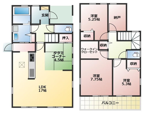 3LDKでシューズインクローク、パントリーもあり、収納豊富な間取です。