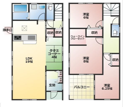 全室6帖以上の3LDKです。LDKは19帖とタタミコーナー4帖で開放的!!