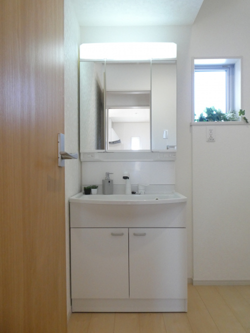 収納やスペースの広い先発洗面台は、3面鏡になっており、メイクなどしやすくなっています。