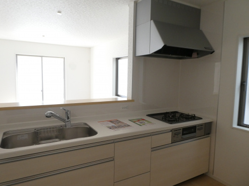 キッチンの対面側には、キッチンと同色のカップボード(費用別途要)を取り付けることもできます。