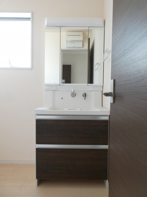 収納やスペースの広い先発洗面台は、3面鏡になっており、メイクなどしやすくなっています。
