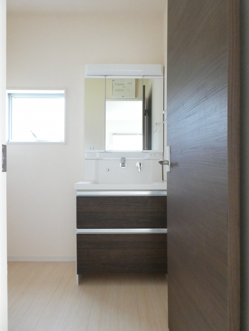 収納やスペースの広い先発洗面台は、3面鏡になっており、メイクなどしやすくなっています。