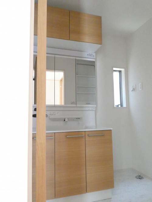 収納やスペースの広い先発洗面台は、3面鏡になっており、メイクなどしやすくなっています。
