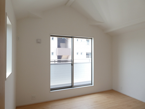 勾配天井のリビングが魅力の物件となっており、好評を得ています。