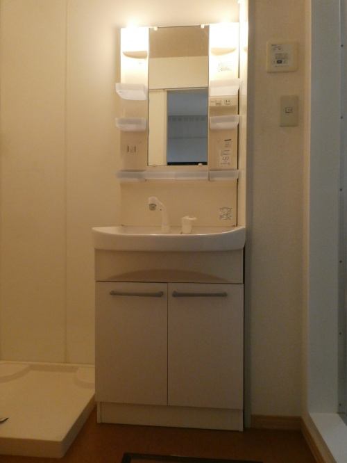 収納やスペースの広い先発洗面台は、3面鏡になっており、メイクなどしやすくなっています。