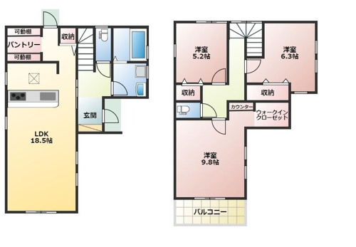 こちらの碧南市鷲塚町新築分譲住宅1号棟の間取りは、3LDKです。