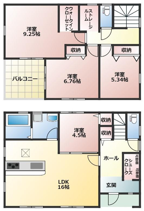 ストレージルームやシューズインクロークのある全室洋室です。