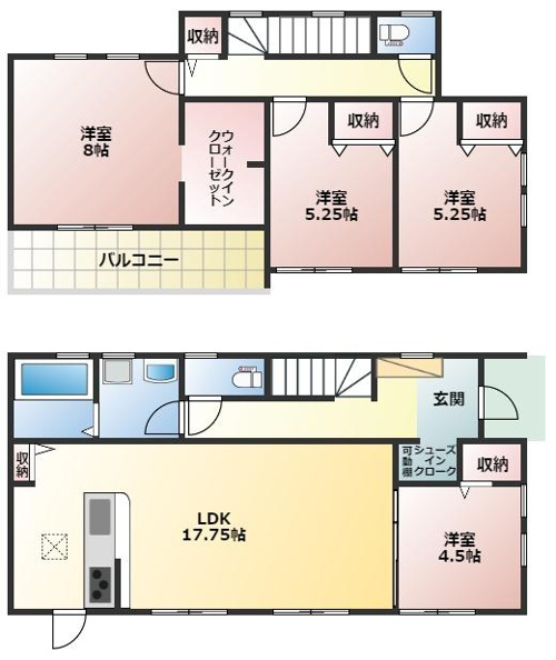 こちらの碧南市平七町新築分譲住宅1号棟の間取りは、4LDKです。