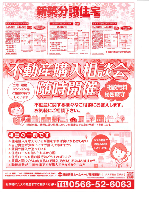 参加希望の方は、事前に八大不動産(0566-52-6063)までご予約下さい。