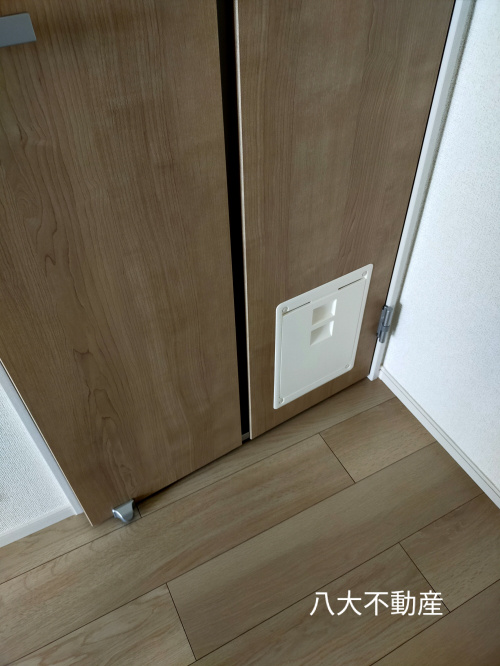 まず、こちらの物件は新築よりペット飼育可能となっていますので、扉にペット専用の出入口があります。