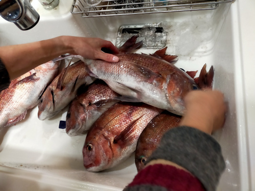 頂いたタイはなんと一番大きいのは50センチオーバー、、、。おじさんありがとう!!