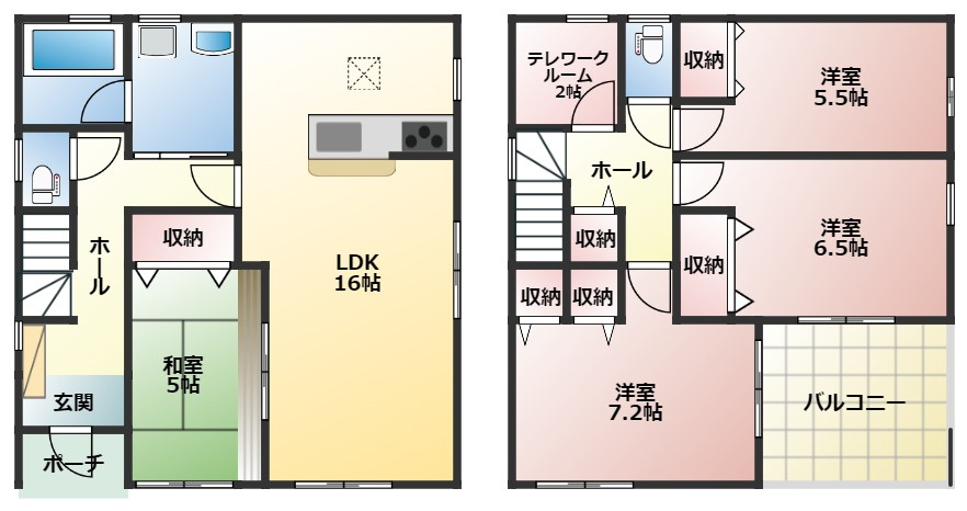 こちらの碧南市神田町新築分譲住宅2号棟の間取りは、4LDK+テレワークルームです。