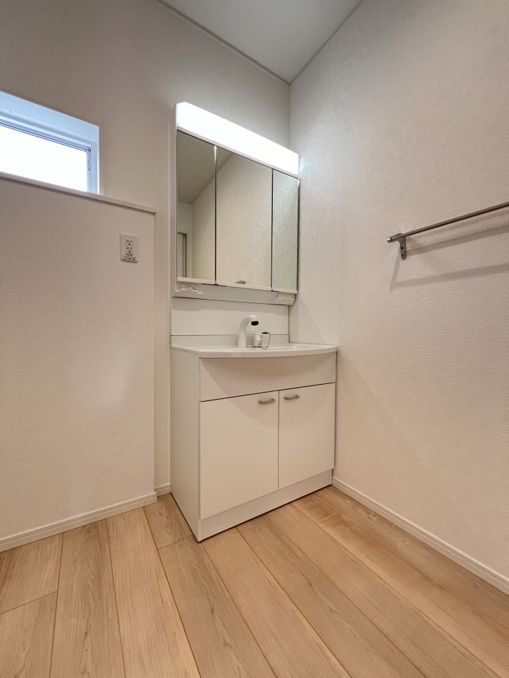 収納やスペースの広い洗髪洗面台は、朝の忙しい準備もスムーズにできます。