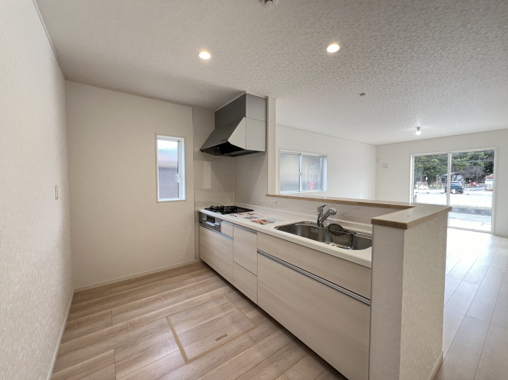 キッチンの対面側には、キッチンと同色のカップボード(費用別途要)を取り付けることもできます。