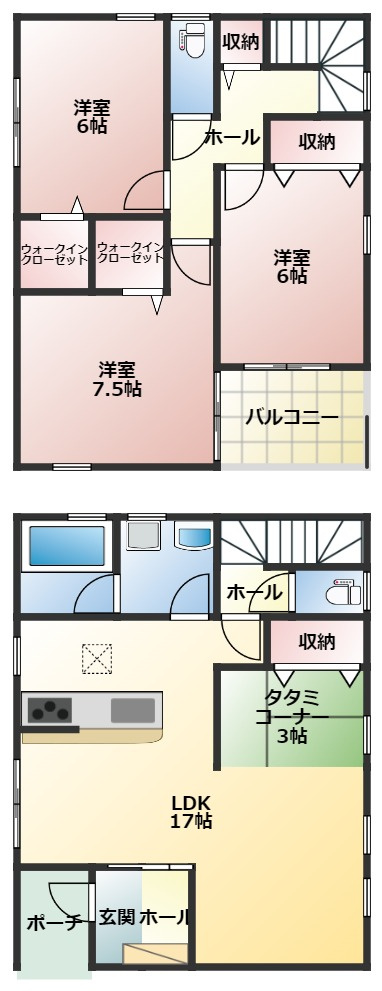 間取りは、3LDK+タタミコーナーとなります。