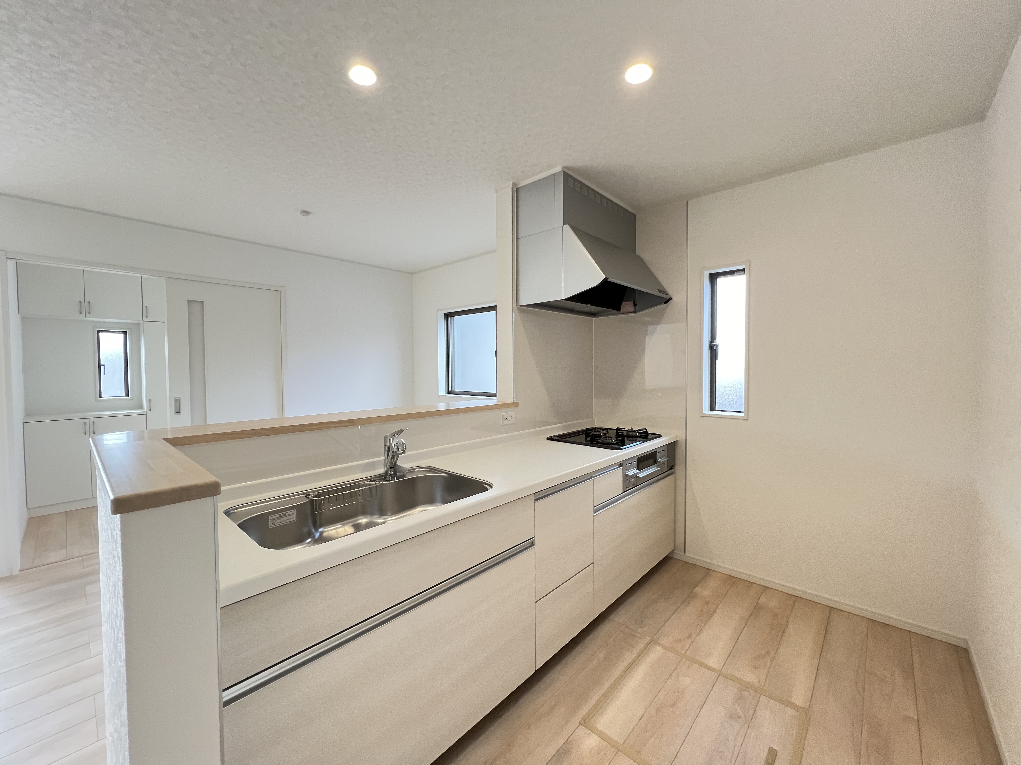 キッチンの対面側には、キッチンと同色のカップボード(費用別途要)を取り付けることもできます。